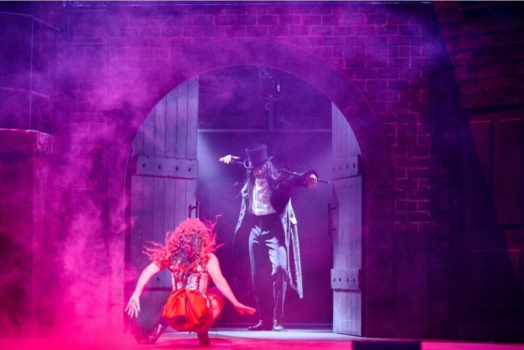 Auch die sehr detailgetreuen Dekorationen und Kostüme der Darmstädter Inszenierung überzeugen, die in den hauseigenen Werkstätten des Staatstheater angefertigt wurden. Das Bühnenbild stammt derweil zum Groteil vom Theater Dortmund, wo das Musical zuletzt aufgeführt wurde. Auch dieses zeigt sich sehr authenthisch und setzt die damalige Epoche toll in Szene. Aus den drei Bühnenbilder auf einer rotierenden Plattform wird mit viel Detailverliebtheit einiges rausgeholt, zudem ist die zweistöckige Bühne ein echtes Highlight. Keine Frage, „Jekyll & Hyde“ in Darmstadt weiß zu überzeugen – Musicalfans sollten sich das Stück nicht entgehen lassen. Zwar sind aktuell alle Vorstellungen ausverkauft, doch ab dem 10.11. um 10 Uhr gehen die Zusatztermine in den Vorverkauf. Wir halten Euch auf dem Laufenden.